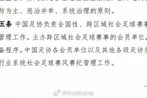當(dāng)然了,但凡對(duì)中國足協(xié)職責(zé)有點(diǎn)了解,懂點(diǎn)新體育法的,或者看過這個(gè)文件的,都不至于想出個(gè)這么搞笑的聯(lián)系。因?yàn)檫@個(gè)文件出臺(tái)背景是蘇超誕生之前的事情,里面甚至白紙黑字規(guī)定了分好了中國足協(xié)和地方足協(xié)、社會(huì)辦賽方的權(quán)利義務(wù),甚至規(guī)定地方賽事主辦者才是賽風(fēng)賽紀(jì)第一責(zé)任人,廣大球迷深惡痛絕的賽風(fēng)賽紀(jì)問題現(xiàn)在捋順了明確的職責(zé)分工,反而對(duì)蘇超這類社會(huì)賽事來說是個(gè)大大的好事。