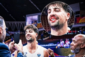 而在本場(chǎng)比賽中阿夫迪亞還磕掉了半顆大門牙。在賽后,阿夫迪亞自己還曬出了牙齒照,并寫到:首勝、一切都是值得的。