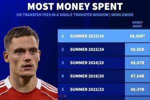 體育資訊08月29日訊 據(jù)德國轉(zhuǎn)會(huì)市場統(tǒng)計(jì),截至目前,今夏全球轉(zhuǎn)會(huì)市場已經(jīng)支出約88.6億歐元的轉(zhuǎn)會(huì)費(fèi),刷新單個(gè)轉(zhuǎn)會(huì)窗的歷史紀(jì)錄,并且距離夏窗結(jié)束還有3天。