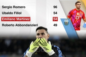 據(jù)ESPN統(tǒng)計,大馬丁已為阿根廷出戰(zhàn)54場比賽,追平菲洛爾并列隊史門將出場第二多,而羅梅羅出場96次隊史門將最多。