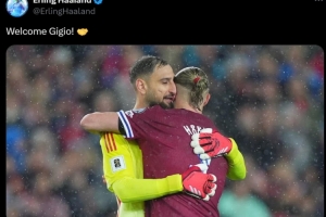 哈蘭德也通過社媒曬出了他與多納魯馬相擁的合照,并熱情歡迎這位強力新援:“歡迎,吉吉奧(吉安路易吉的昵稱)!”