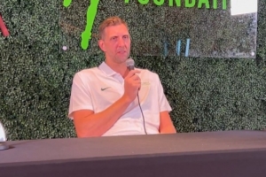 體育資訊9月14日訊 今日獨(dú)行俠名宿諾維茨基的基金會舉辦了第七屆名人網(wǎng)球賽,諾維茨基在新聞發(fā)布會上談到了獨(dú)行俠狀元弗拉格。