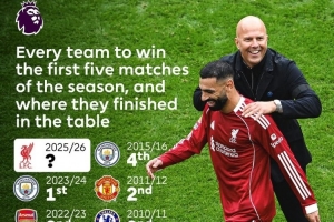 據(jù)英超官方統(tǒng)計(jì),英超歷史上共有14支球隊(duì)賽季開(kāi)局5連勝(包括本賽季利物浦),此前做到這點(diǎn)的13支球隊(duì)之中,4支球隊(duì)最終贏得當(dāng)賽季英超冠軍,分別是切爾西(2次)、利物浦和曼城。