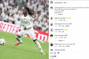他也在賽后通過社媒曬出自己的比賽照,并配文:“歷經(jīng)五個(gè)月艱難時(shí)光,很開心終于重新踏上世界最佳球場(chǎng)的草皮——且收獲勝利?;蜀R加油??”