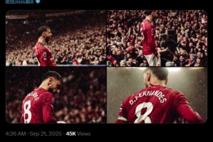 體育資訊9月21日訊 本輪英超焦點戰(zhàn),曼聯(lián)2-1戰(zhàn)勝切爾西。賽后,B費發(fā)文慶祝勝利。