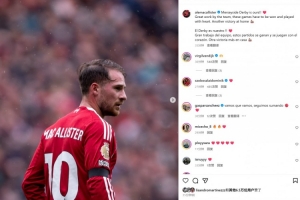 麥卡利斯特賽后在個(gè)人社媒曬出本場(chǎng)照片,配文寫道:“默西塞德德比勝利屬于我們,球隊(duì)拿出了很棒的表現(xiàn),這是必須要取勝,必須全力拼搏的比賽,又一場(chǎng)主場(chǎng)勝利!”