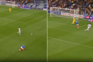 當(dāng)時(shí)樸茨茅斯后衛(wèi)康納-肖內(nèi)西正沖刺攔截一個(gè)自由球時(shí)突然因傷減速,這位球員蹣跚幾步后痛苦倒地,但他的不幸卻成為布朗的幸運(yùn),謝周三前鋒在無(wú)人盯防的情況下得球,徑直沖向樸茨茅斯球門。