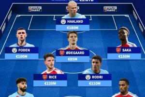 賽前,德轉(zhuǎn)盤點(diǎn)了對陣雙方的身價(jià)最貴11人陣容,這套陣容總身價(jià)達(dá)到了驚人的10.7億歐,哈蘭德憑借1.8億歐的身價(jià)領(lǐng)銜,薩卡1.5億歐元次之。