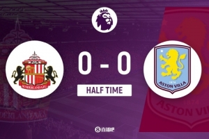傷停補(bǔ)時(shí)3分鐘。上半場比賽結(jié)束,桑德蘭0-0阿斯頓維拉。