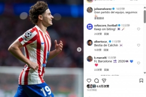 本場比賽阿爾瓦雷斯1球2助攻,賽后他也在個人社媒曬出本場慶祝照片,配文寫道:“全隊拿出精彩表現(xiàn),讓我們繼續(xù)加油!”