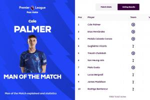 體育資訊4月4日訊 英超第30輪比賽,帕爾默助攻恩佐破門,切爾西主場1-0擊敗熱刺。英超官方宣布,帕爾默當(dāng)選本場比賽全場最佳球員。