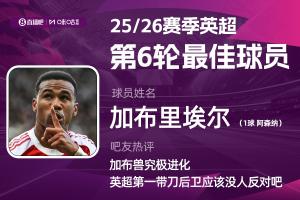 2025-2026賽季英超火熱進(jìn)行中,體育資訊和咪咕體育聯(lián)合發(fā)起每輪英超最佳球員評(píng)選活動(dòng)!第六輪評(píng)選結(jié)果結(jié)出爐,加布里埃爾頭球絕殺,幫助阿森納2-1戰(zhàn)勝紐卡斯?fàn)枺@得吧友8萬票的支持,力壓哈蘭德當(dāng)選 【體育資訊X咪咕體育英超第6輪最佳球員】!