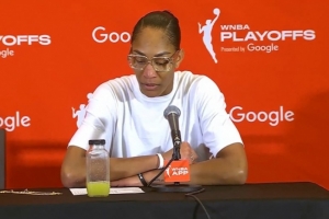 在賽后的新聞發(fā)布會(huì)上,阿賈談到了科利爾炮轟WNBA聯(lián)盟總裁凱茜-恩格波特的事情,她堅(jiān)定地站在了球員一方。她表示:“我對(duì)恩格波特的言論感到惡心,很高興科利爾代表我們球員們發(fā)聲。”