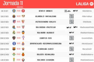 體育資訊10月1日訊 今天,西甲聯(lián)賽在官網(wǎng)公布了第11輪賽程,皇馬和巴薩分別在主場(chǎng)對(duì)陣瓦倫西亞和埃爾切。
