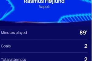 本場比賽霍伊倫梅開二度,2次射門進2球,賽后他也當(dāng)選歐冠官方評選出的本場最佳球員。