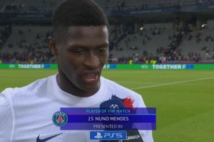 此役努諾-門德斯踢滿全場(chǎng)送出助攻,幫助巴黎取勝,他當(dāng)選本場(chǎng)比賽最佳球員。
