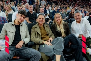 歐洲籃球聯(lián)賽,拜仁主場(chǎng)97比88擊敗紅星,拜仁俱樂部主席海納、拜仁中場(chǎng)帕夫洛維奇、拜仁女足球員達(dá)姆賈諾維奇、格溫現(xiàn)場(chǎng)觀看比賽,為拜仁男籃助威。