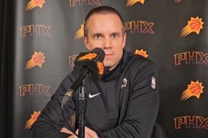 談及球隊(duì)提速打法,奧特特別提到了布克的一個回合表現(xiàn):對手完成扣籃后,布克僅用6秒就完成快攻上籃。
