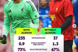 由于阿利森受傷,瑪瑪達(dá)什維利很可能在本場臨危受命。英超官方也盤點(diǎn)了阿利森此前登場與否對于利物浦的影響,具體如下: