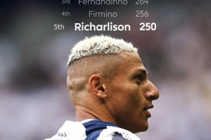 5、理查利森 250場(chǎng)