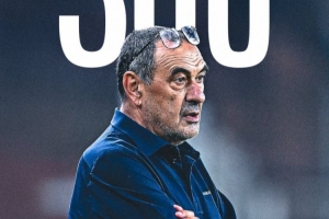 意甲官方社媒曬出薩里海報(bào),祝賀薩里執(zhí)教意甲300場(chǎng)里程碑。