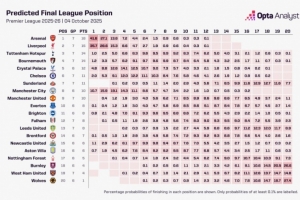 此役過后,數(shù)據(jù)機(jī)構(gòu)OPTA超級(jí)計(jì)算機(jī)預(yù)測(cè)本賽季英超冠軍↓