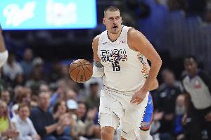 體育資訊10月5日訊 NBA季前賽,掘金半場(chǎng)63-72落后森林狼。