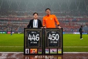 7月27日山東泰山對(duì)陣梅州客家的比賽,王大雷首發(fā)出戰(zhàn),他也以446場(chǎng)成為中國(guó)頂級(jí)聯(lián)賽出場(chǎng)王。在昨天泰山對(duì)陣玉昆賽前,王大雷領(lǐng)取了446場(chǎng)的紀(jì)念球衣,他同時(shí)還領(lǐng)取了中國(guó)頂級(jí)聯(lián)賽450次出場(chǎng)紀(jì)念球衣。