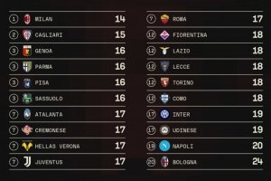 由于人數(shù)有限,還帶來了另一個結果,那就是米蘭是目前本賽季意甲使用首發(fā)球員最少的球隊,只有14名球員擔任過首發(fā)。