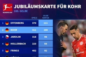 體育資訊10月7日訊 德國轉(zhuǎn)會(huì)市場(chǎng)統(tǒng)計(jì)了球員在德甲聯(lián)賽中吃到黃牌的數(shù)量,并列出榜單,埃芬博格111黃居首,科赫100黃次席。