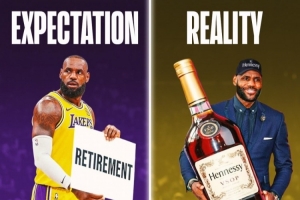 退役?最后一舞?也許是一場告別巡演?現(xiàn)在決定二已經(jīng)揭曉答案,沒有熱淚盈眶的告別,沒有球衣升上球館上方那一刻的感動,不是退役演講,而是一則限量版的聯(lián)名酒廣告。從“我要把天賦帶到南海岸”,到“我要把天賦帶到酒柜頂層”。我們以為要失去勒布朗,結(jié)果發(fā)現(xiàn),他只是又拿到了一份大合同。