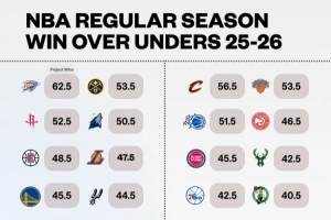 體育資訊10月8日訊 博彩公司BetMGM給出了新賽季NBA各隊常規(guī)賽的勝場盤口指數,其中雷霆的勝場盤口指數為62.5,是所有球隊中最高的。這可以大致理解為博彩公司認為雷霆的勝場數最有可能就是62、63場這幾個接近的數字。