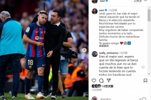 體育資訊10月8日訊 阿爾巴將在本賽季結(jié)束后退役,哈維社媒發(fā)文祝福。