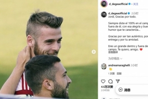 體育資訊10月8日訊 不久前,德赫亞更新了社交媒體,致敬宣布本賽季結束后退役的阿爾巴,兩人曾經(jīng)是西班牙國家隊的隊友。