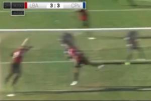 佛得角隊員射門遭對手門線解圍