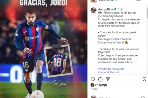 體育資訊10月9日訊 阿爾巴宣布本賽季結(jié)束后退役,巴薩名宿、現(xiàn)任總監(jiān)德科社媒發(fā)文祝福。