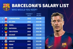 德轉(zhuǎn)列巴薩年薪榜:萊萬2080萬歐居首,德容1900萬歐次席