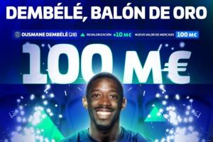 體育資訊10月10日訊 德國(guó)足球轉(zhuǎn)會(huì)市場(chǎng)更新了法甲球員身價(jià),28歲的巴黎前鋒登貝萊身價(jià)上漲到1億歐元,自2019年后身價(jià)再次突破1億大關(guān)。
