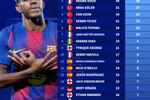 體育資訊10月10日訊 德國轉(zhuǎn)會(huì)市場盤點(diǎn)了2025年俱樂部層面各項(xiàng)賽事參與進(jìn)球最多U21球員,亞馬爾39場32球居首,杜埃39場26球位居次席。