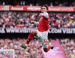 英超第4輪在酋長球場迎戰(zhàn)諾丁漢森林的比賽第31分鐘,蘇維門迪在禁區(qū)弧頂位置奉獻了一記非常精彩的凌空斬,打進了自己加盟阿森納的處子球,幫助球隊取得1-0的領(lǐng)先。