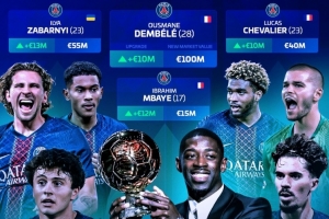 體育資訊10月10日訊 德轉(zhuǎn)更新了法甲球員身價(jià),其中巴黎多人身價(jià)上漲,具體如下: