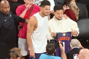 賽后,布克的模仿者和布克合影留念,并獲得布克的親簽球衣,對此,布克說道:“很高興看到中文布克。因?yàn)榭臻g的距離,我以為我們相遇的希望渺茫,但中國賽是相遇的完美地方。我最終給了他我的比賽球衣?!?/p>
