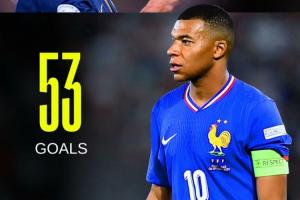 本場比賽姆巴佩連過數(shù)人抽射破門,國家隊近5場5球4助,生涯93場已有53球,距隊史射手王吉魯(57球)僅差4球。