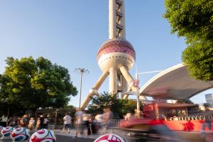 近日,2026年FIFA世界杯官方比賽用球“三重浪”來到上海東方明珠廣播電視塔,開啟限時(shí)亮相活動。
