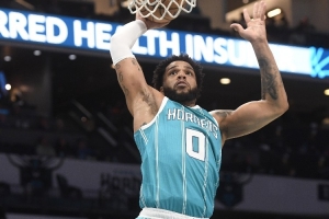 黃蜂球員布里奇斯首節(jié)表現(xiàn)相當出色,他兩度迎著濃眉防守命中三分,并且還有空接暴扣的精彩表現(xiàn)。