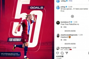 哈蘭德在配文中寫道:“第50球很特別……但第51球的感覺會更好??????”
