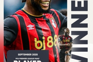 體育資訊10月13日訊 PFA(英格蘭職業(yè)球員工會,Professional Footballers' Association)官方宣布,伯恩茅斯邊鋒塞梅尼奧當(dāng)選球迷票選英超9月最佳球員。