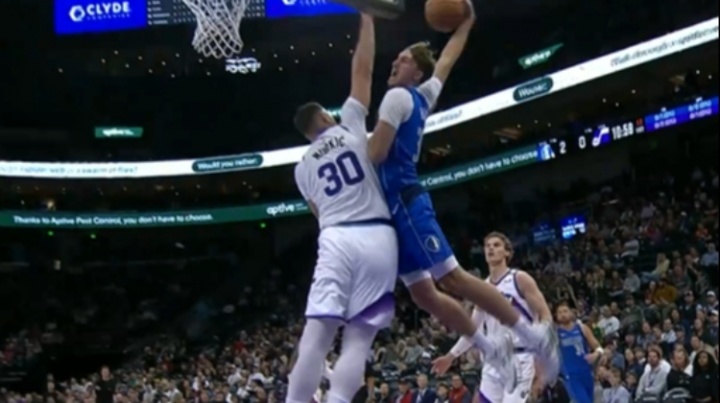 GIF-弗拉格單臂隔扣努爾基奇扣飛但被犯規(guī)