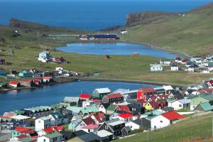 在挪威與冰島之間的茫茫大海上,有18座島嶼如造物主不經(jīng)意間灑落的翡翠,點(diǎn)綴在深藍(lán)色的北大西洋中,這里就是法羅群島(法羅語(yǔ):F?royar,丹麥語(yǔ):F?r?erne),丹麥王國(guó)的海外自治領(lǐng)地。1399平方公里的陸地上,陡峭的懸崖如同巨人的階梯,直插洶涌的海面,1117公里曲折的海岸線勾勒出這片土地倔強(qiáng)的輪廓。
