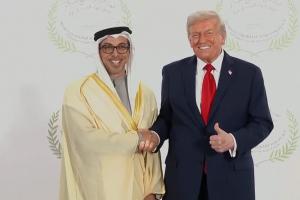 體育資訊10月14日訊 美國總統(tǒng)特朗普會(huì)面了阿聯(lián)酋副總理曼蘇爾,特朗普與其握手時(shí)笑容滿面:“非常多的現(xiàn)金,無限的現(xiàn)金,非常好的人。”